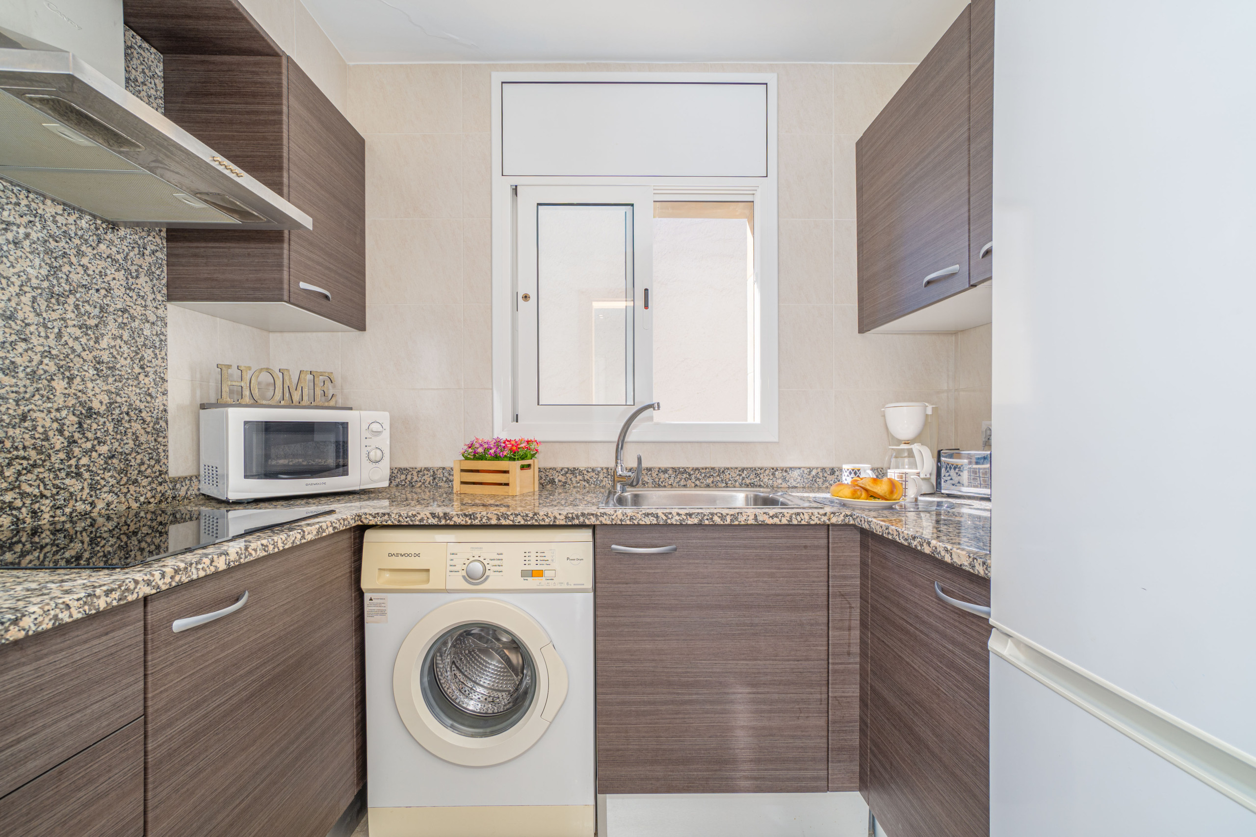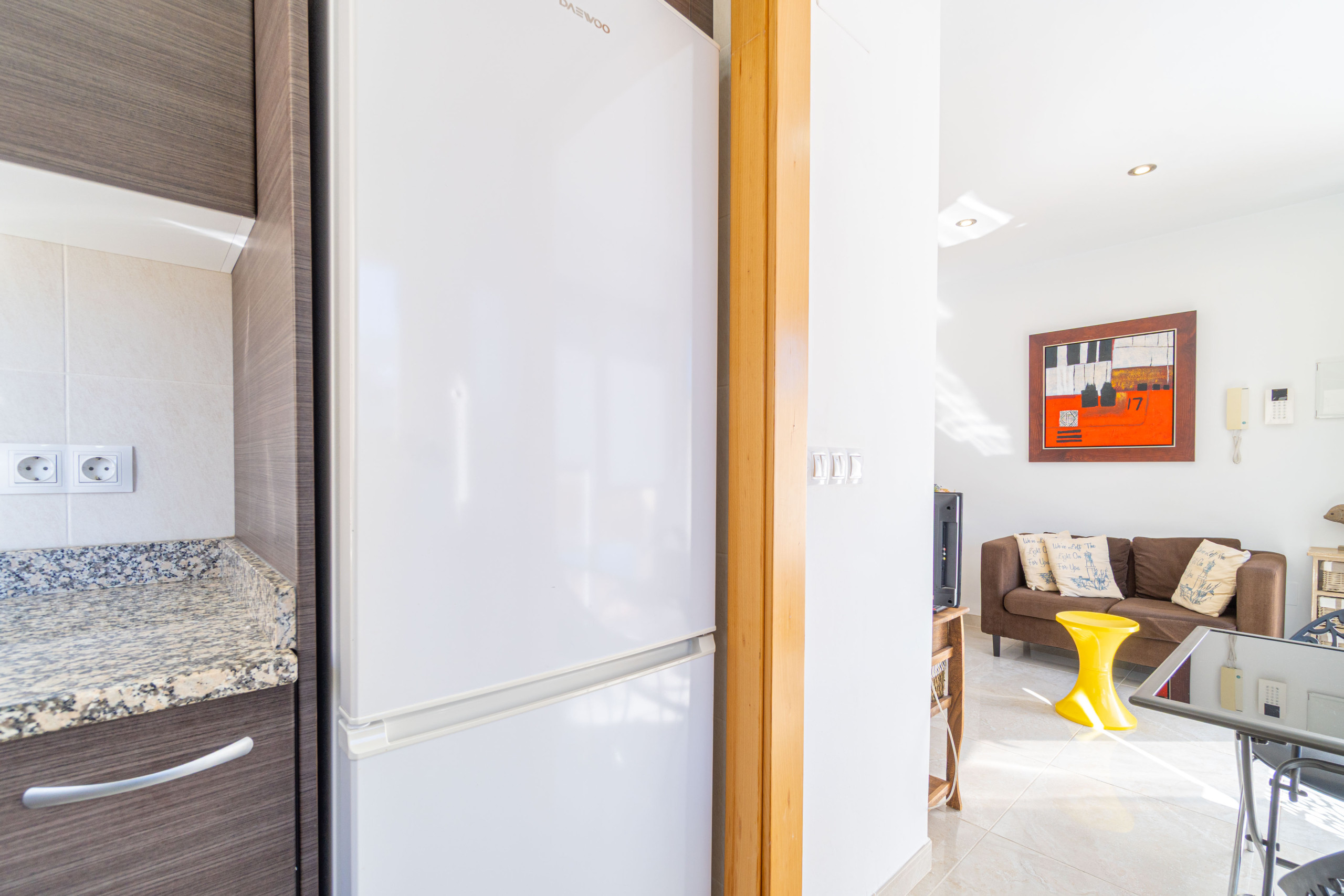 La cuina independent, de vitroceràmica, està equipada amb nevera, microones, congelador, vaixella/coberts, estris de cuina, cafetera i torradora.